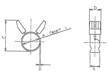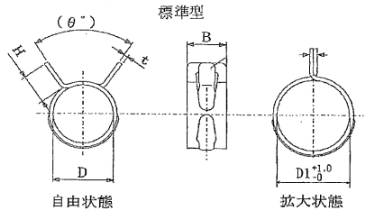 品番 | D | D1 | t | B±0.25 | H±0.5 | θ | 許容差 | 仕様範囲 |