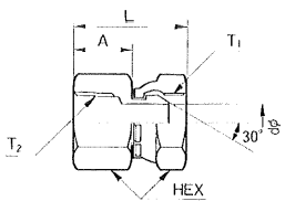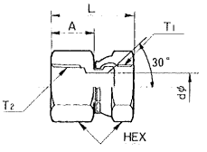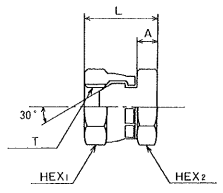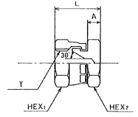品番 | 呼び径 | ネジT1 | 全長L | 寸法A | HEX1 | HEX2 |