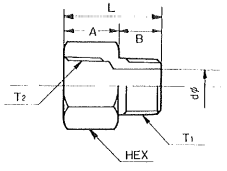 品番 | 呼び径 | ネジT1 | ネジT2 | 全長L | 寸法A | 寸法B | DΦ | HEX |