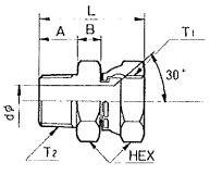 品番 | 呼び径 | ネジT1 | 全長L | 寸法A | 寸法B | HEX |